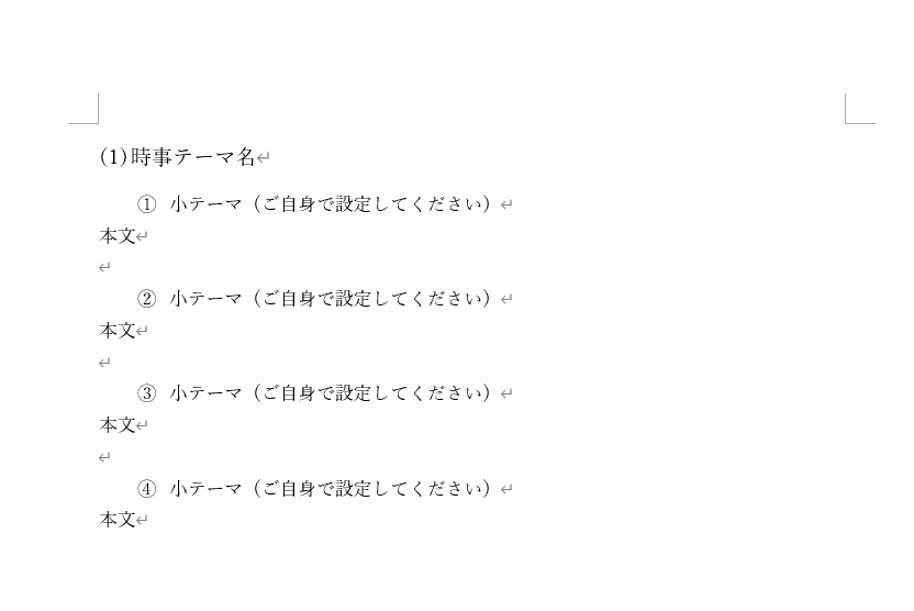 (例:他の受験生が先にエネルギー問題で作業を始めていた場合、自分はエネルギー問題の作業を行うことができません) - 1つの時事テーマは、概ねWordファイル4~5ページ程度でまとめてください。