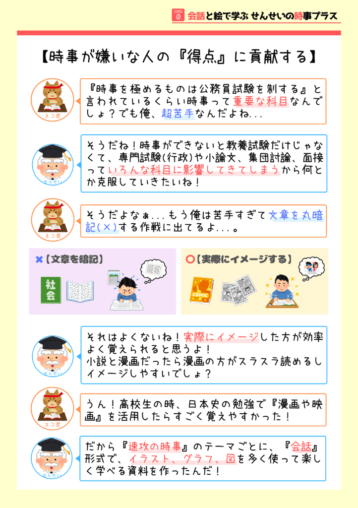 一言でいうと、【時事が苦手な人が楽しく学ぶ】ための本です!