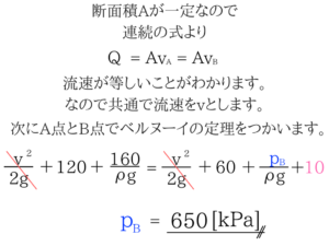 A点の流速をvA、B点での流速をvBと置いたときvA=vBとなります。