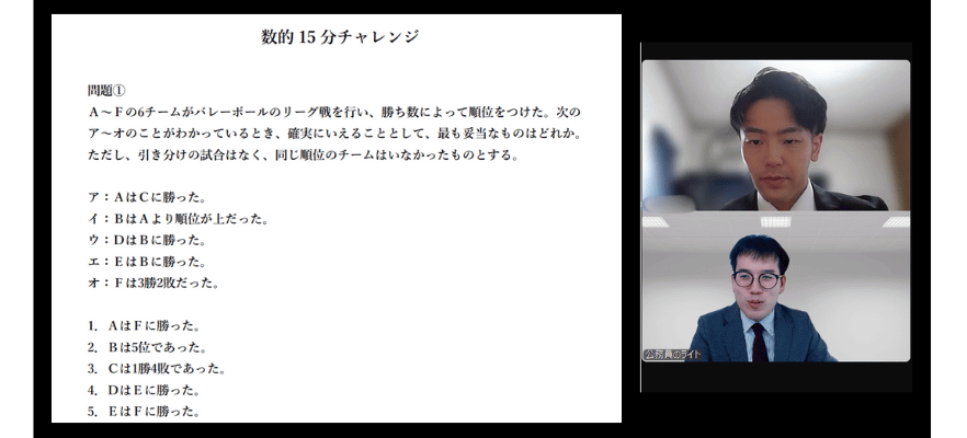 大学時代に独学で公務員試験に挑戦してみたものの、全ての受験先に落ちてしまい、他の内定先の会社で社会人をしていました。 会社で働くにつれ、再度公務員試験を受験したい気持ちが強くなり、再受験を志しました。 独学で一度失敗していたため、次は公務員試験のサービスを利用して合格しようと思い、様々なサービスを調べました。その中で公務員のライトでは オンラインでのサービスであること、やるべきことをしっかりと絞った講義展開を行なっていることを知りました。 また、マンツーマン個別サポートは、先生がやるべきことを明確化してくれるということも知り、受講しようと思いました。