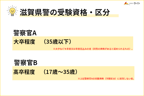 滋賀県警の試験区分はA区分・B区分に分かれています。