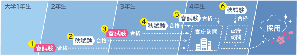 春と秋の年2回実施により、大学在学中に受験できる回数が4回から6回に増えました。