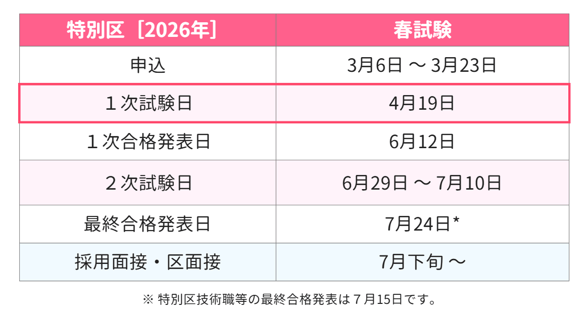 特別区の試験日程[2026年]