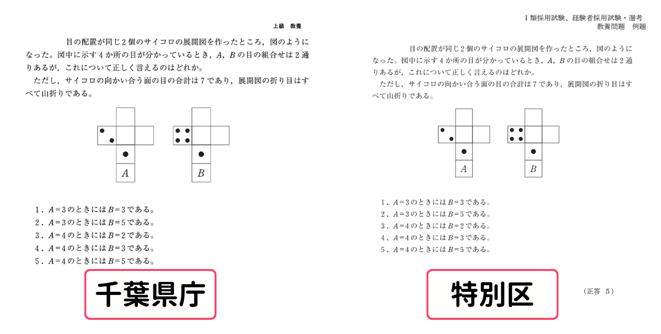 こちらは千葉県庁(以下、地方上級)と特別区の公式HPで公表されている「数的処理」の例題です。