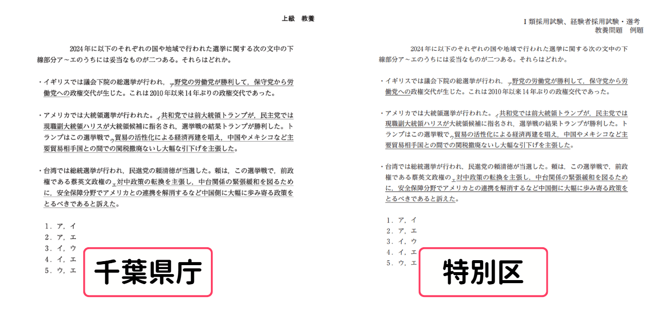 これまでは地方上級の試験と特別区の試験とでは、出題傾向に違いがあり、特に特別区の試験では特別区ならではの特徴がありましたが、地方上級と同じ問題になっています。