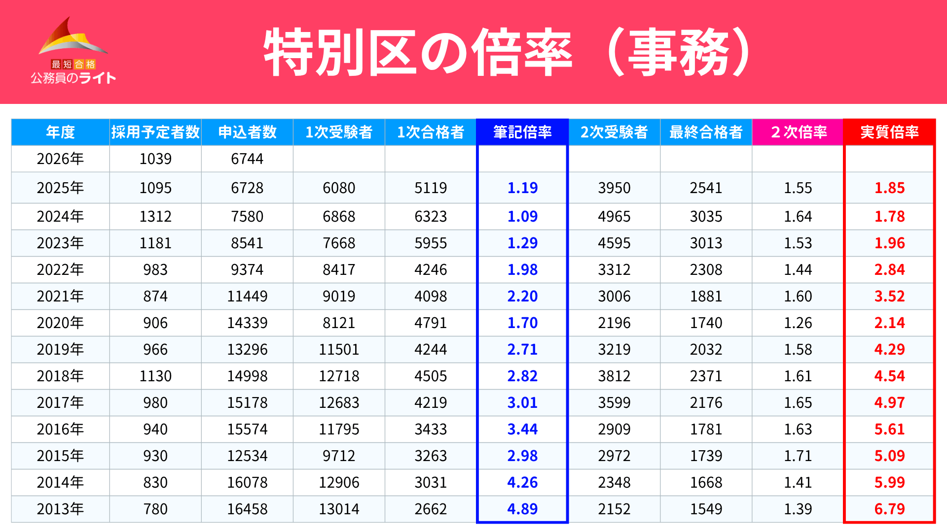 - 1 【特別区の倍率】『事務』について一覧で紹介!